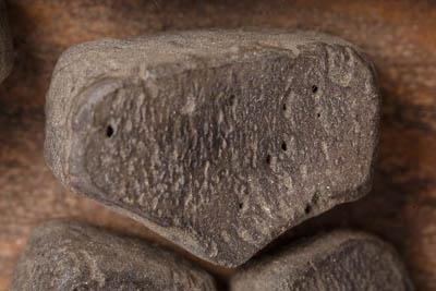 Кость ласта плезиозавра. Имеет неправильно-пятиугольную форму. Пористая, хрупкая, тёмно-бурого цвета