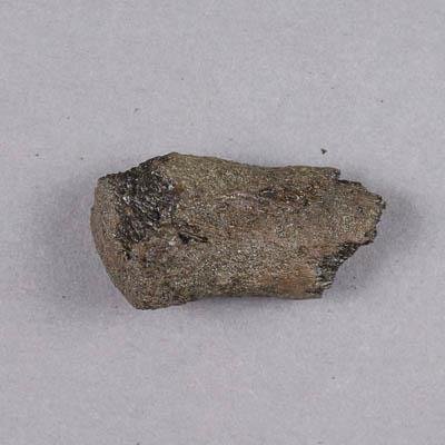 Фрагмент кости конечности плезиозавра. Кость окатана волнами и с одного конца - обломанная. Окраска образца тёмно-бурая. Кость пористая, хрупкая.
